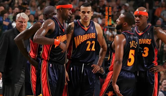 反觀當賽季的勇士,別說最佳陣容了,連個他喵的全明星都沒有,唯一收獲的兩個榮譽,就是浪子回頭的巴朗-戴維斯拿了一個搶斷王,去年的次輪秀蒙塔-埃利斯拿了一個最快進步球員,最重要的是,勇士因為打跑轟體系,全隊除了一個身高211公分的比德林斯之外,再無第二名身高超過210公分的球員,一色的兩米左右的鋒線。